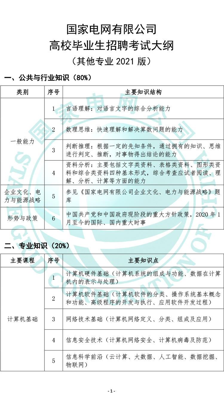 2021國家電網(wǎng)有限公司高校畢業(yè)生招聘考試大綱(其他專業(yè))